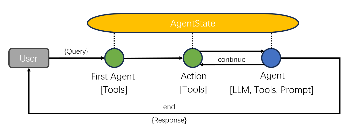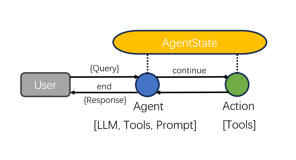 - 设置:初始设置保持不变,无需额外安装。首先,创建工具,设置工具执行器,然后准备需要的模型,将工具绑定到模型,并定义智能体状态,所有这些都与前面的例子中所做的一样。